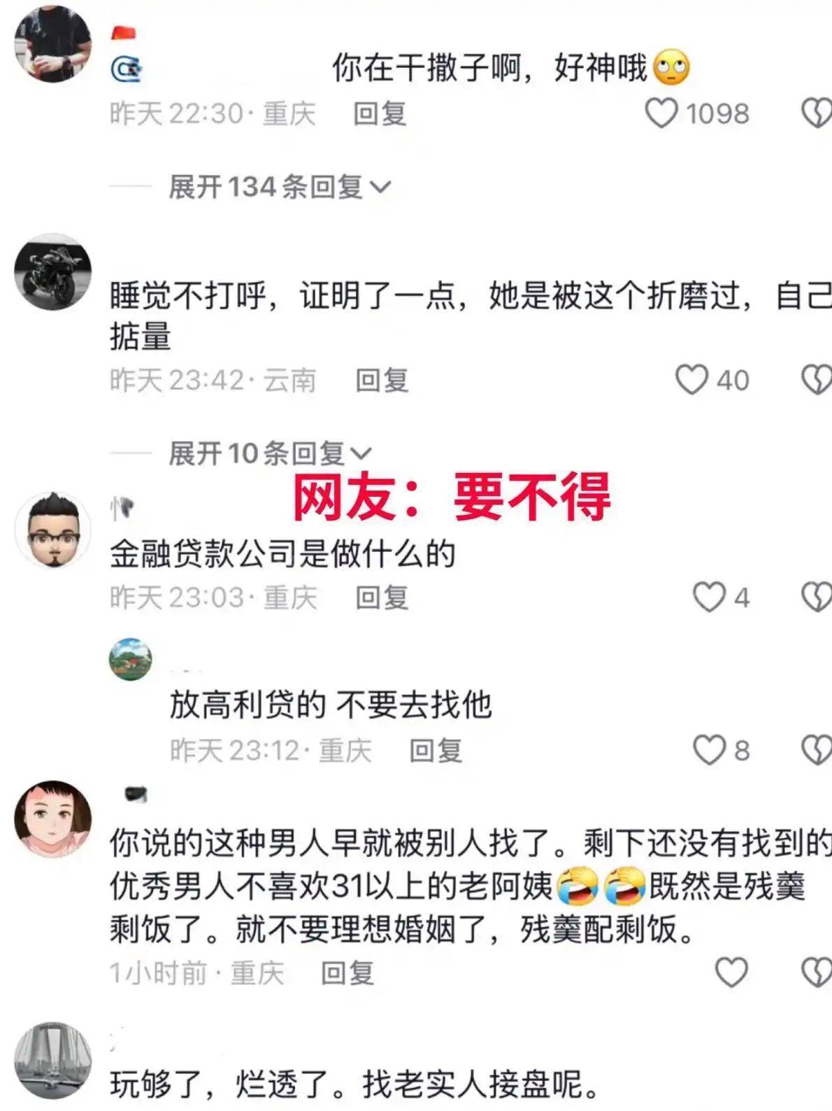 也有一些人直接表明那女孩找对象不会成功:“整天洗足部,不可以打呼噜,不可以出汗,一眼就能看出是被这状况折腾过。简单来讲,就是想寻觅接盘之人。既然你是剩余残品,那就应该搭配剩下冷食,整整一年都寻觅不到对象!”。